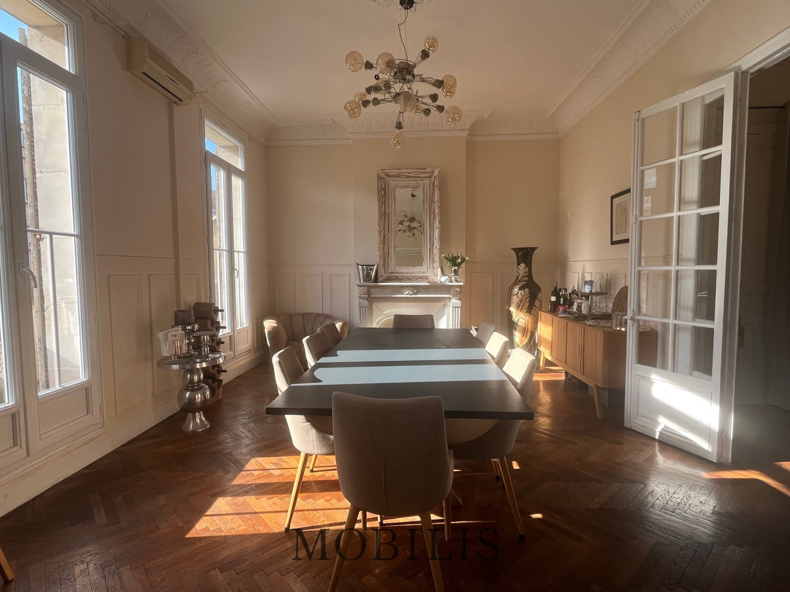 MARSEILLE 8EME - PARADIS - En plein coeur du Carré d'Or, découvrez cet appartement d'exception de 160m², situé en étage élevé d'un magnifique immeuble bourgeois avec ascenseur, dans le prestigieux secteur Paradis-Saint Giniez du 8ème arrondissement de Marseille.Cachet et raffinement pour cet appartement familial offrant de beaux volumes et un charme unique. Appartement traversant sans vis-à-vis direct, garantissant une intimité totale et une luminosité exceptionnelle tout au long de la journée. Il comprend un magnifique double séjour, une cuisine avec cellier, 3 chambres, un bureau, une salle d'eau et 2 wc. Egalement de nombreux rangements. Caractéristiques principales : Double séjour spacieux avec cheminées d'origine, parfait pour vos moments de détente et de réception. - Moulures apparentes et parquet, ajoutant une touche d'élégance intemporelle dans chaque pièce. Belle belle hauteur sous plafond, accentuant la sensation d'espace et de lumière inégalée.